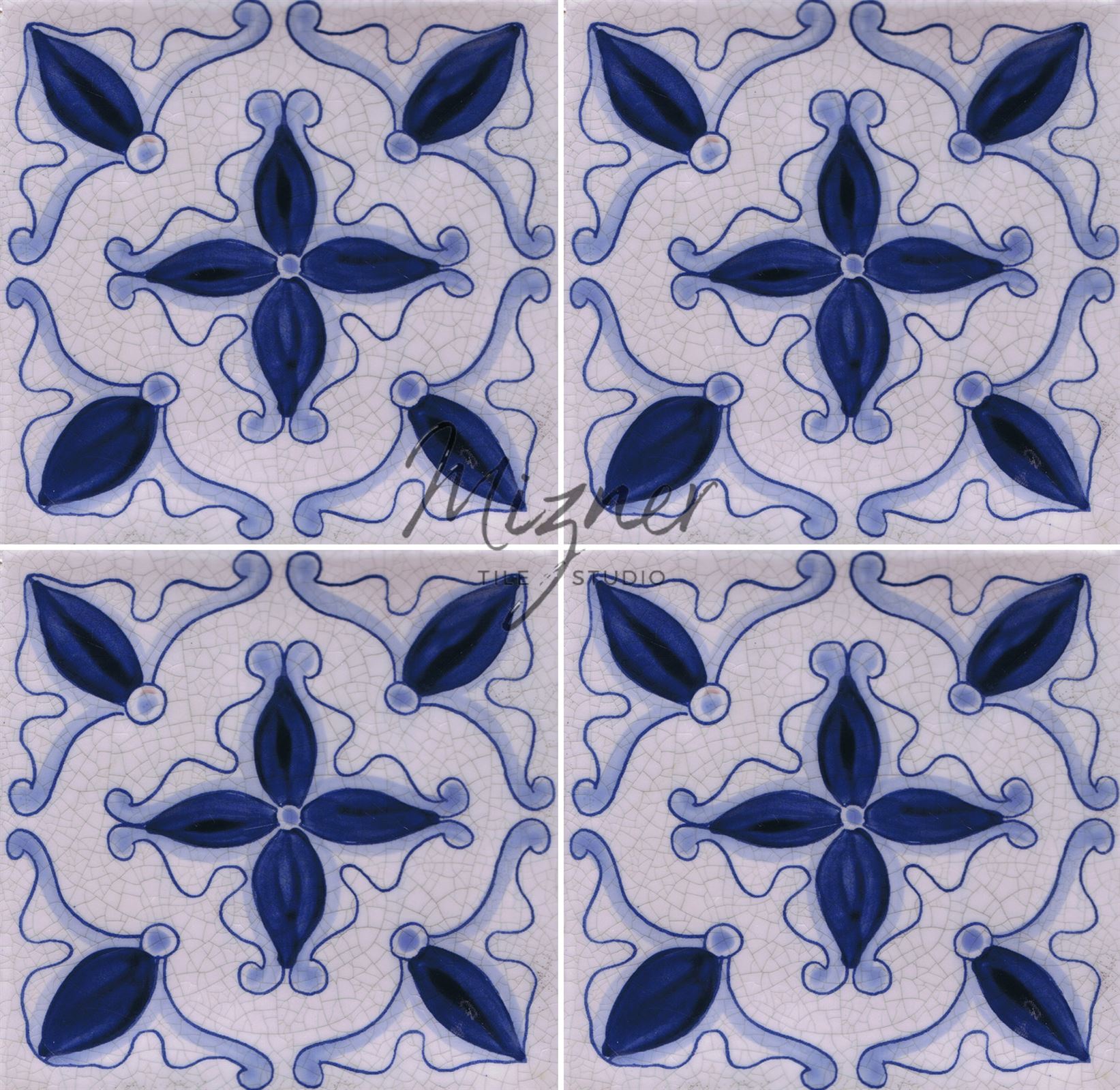 In the Mid 1800’s the Harlingen factory in the Netherlands produced many tiles similar to this one. We found inspiration for our designs in a historic pattern book from the original Dutch factory, now in the Mizner Tile Studio library.